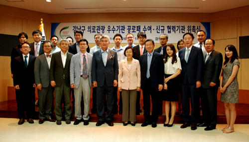 예송이비인후과 음성센터(이하, 예송음성센터)는 지난 26일 강남구청에서 ‘강남구 의료관광 외국인 환자 유치 우수기관’으로 선정되어 공로패를 수여했습니다. 이번 수여식에는 신규 협력기관 위촉식과 함께 진행되었으며, 강남구청에서 2013년도 외국인환자 유치활동에 남다른 노력으로 지역경제 활성화에 기여한 의료기관을 선정하였습니다. 예송음성센터를 포함, 총 병·의원급 21개의 강남구 의료기관(삼성서울병원, 강남차병원, 미즈메디병원, CDC어린이치과병원, 자생한방병원, 차움의원, 서울대학교병원 강남의원 등)이 참석해 공로패를 수여하였으며, 이비인후과로는 예송음성센터가 유일하게 이름을 올렸습니다. 예송음성센터는 2007년부터 1:1 해외환자 맞춤 진료 시스템으로 전문적인 해외환자 유치와 더불어 외국인의사 국내연수사업, 동북아시아지역 나눔의료사업, 카자흐스탄 국립병원 마스터클래스 등의 국제 의료 사회 공헌 활동 그리고 국제이비인후과연맹 세계학술대회(IFOS), 모스크바 국제 의료관광 협의회(MHTC), 유럽의학센터(EMC) 의료협력 및 의료진 교육연수 MOU 등 다양한 국제행사 참가·추진하여 한국의 선진 의료 기술을 널리 알린 공을 인정 받아 외국인환자 유치우수기관으로 공로패를 수여 받았습니다. 예송음성센터 김형태 원장은 “이번 공로패 수상으로 세계화(globalization)에 맞는 의료 기술과 서비스를 제공하는 음성센터로 인정 받게 되어 기쁘다”며 ”미국, 스페인, 브라질, 프랑스, 영국, 이탈리아, 러시아, 중국 등에서 오는 해외 환자들이 먼저 알아보는 한국 예송만의 의료 기술 우수성과 서비스에 만족하는 모습을 볼 때 더욱 더 자부심이 생긴다”고 전했습니다.