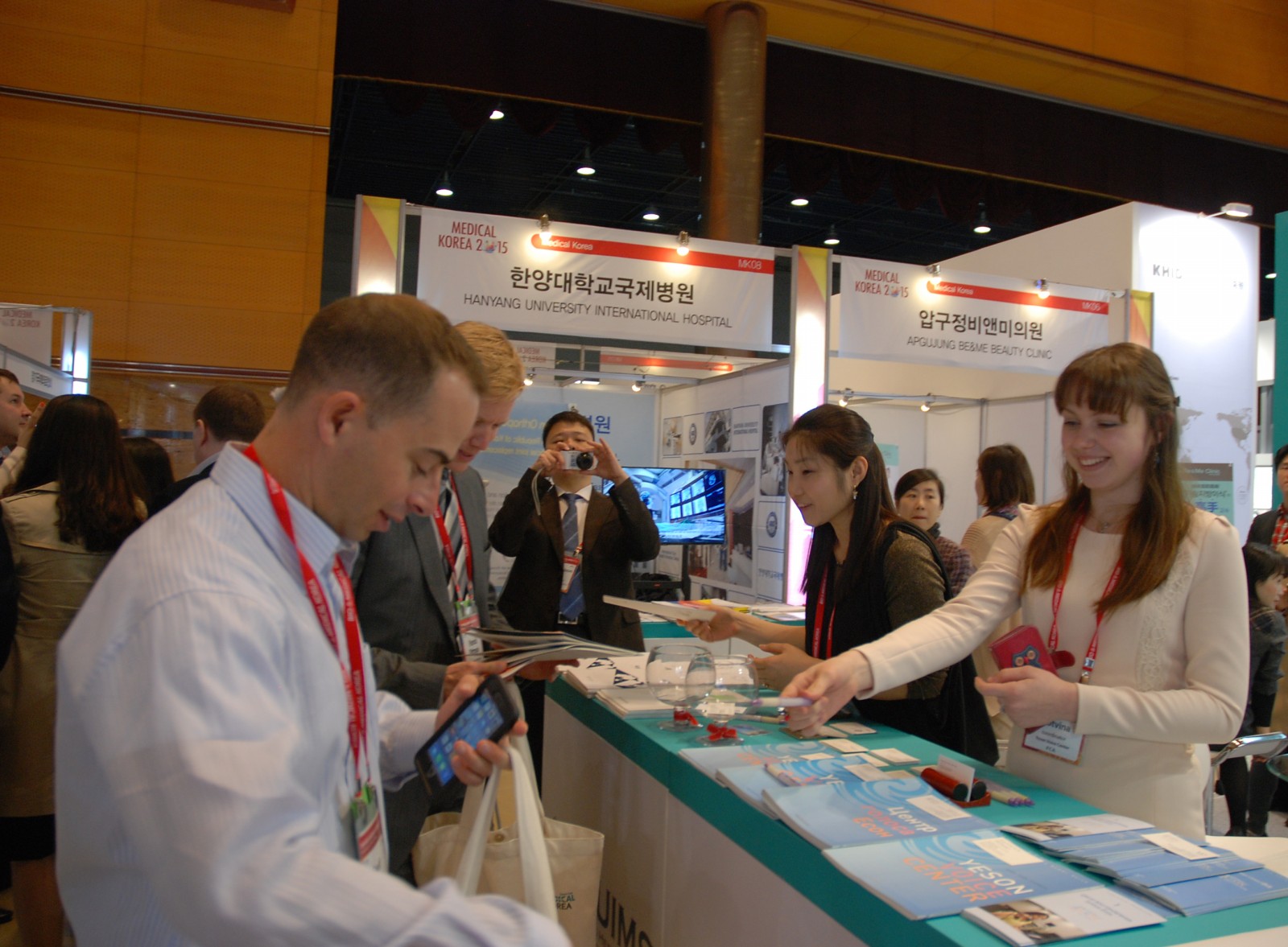 예송이비인후과 음성센터(이하, 예송음성센터)는 지난 8일부터 10일까지 총 3일간 코엑스(COEX)에서 진행된 ‘메디컬 코리아 2015 – 제 6회 글로벌 헬스케어 & 의료관광 컨퍼런스’(The 6TH Global Healthcare & Medical Tourism Conference)에 참여했습니다. 보건복지부가 주최하고 한국보건산업진흥원이 주관하는 이번 컨퍼런스는 해외환자 유치와 의료시스템 해외진출 분야의 최신 동향을 발표하고 토론하는 6개의 세션의 컨퍼런스, 국내 의료기관 및 유치업체와 해외 사업파트너를 사전에 연결한 비즈니스 미팅, 57개의 테마 별 홍보부스 운영, 해외환자 유치 활성화 관련 신규 일자리 창출 확대와 고용 증진을 위한 잡페어 등 다채로운 프로그램이 마련되어 진행됐습니다. ‘혁신적 글로벌 헬스케어 시대를 대비한 제2의 도약’이라는 슬로건 아래 실시된 이번 컨퍼런스에는 30여 개 나라의 정부 및 공공기관, 지자체, 의료기관, 해외환자 유치업체, 유관협회, 관련 기업 등 관계자 500여명이 참가했습니다 예송음성센터는 이비인후과로는 유일하게 참여했으며 예송음성센터의 목소리 치료로 특화된 프로그램에 많은 관심을 받았습니다.