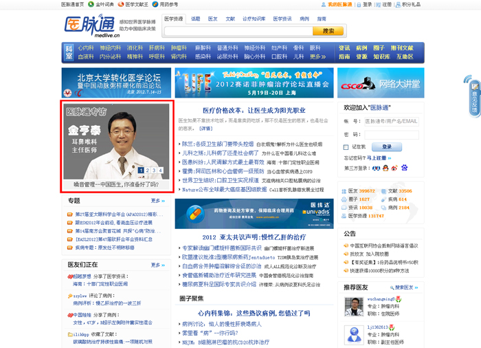 ![]() 중 의료 사이트 의매통에 인터뷰 실려 중국 의료 사이트인‘의매통’에 예송이비인후과 김형태 원장의 인터뷰가 실려 화제를 모으고 있습니다. 의매통(www.medlive.cn)은 중국의 의사들을 대상으로 하는 역사와 전통을 자랑하는 의료 전문 사이트로서 회원 수만30만 명에 달하는 대형 사이트입니다. 이번 인터뷰는 김형태 원장이 지난5월28일부터6월1일까지 열린 ‘제1회 중국병원서비스 및 국제컨퍼런스 헬스케어 박람회’에 참석한 것이 계기가 돼 성사됐습니다. 인터뷰 주제는 ‘중국의사들, 음성관리 및 치료에 대한 준비가 돼 있는가?’이며 특히 이번 인터뷰는 의매통 메인 페이지에 실려 많은 조회수를 기록했습니다. 김형태 원장은 “중국 최고 의료 전문 사이트에 한국의 앞선 의술을 소개할 수 있어서 기쁘고 좋은 기회를 준 의매통 관계자에게도 감사를 드린다”고 전했습니다. |